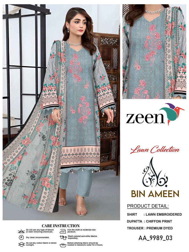 EMB 3 Piece Blue Suit | Lawn Stuff By ZEEN