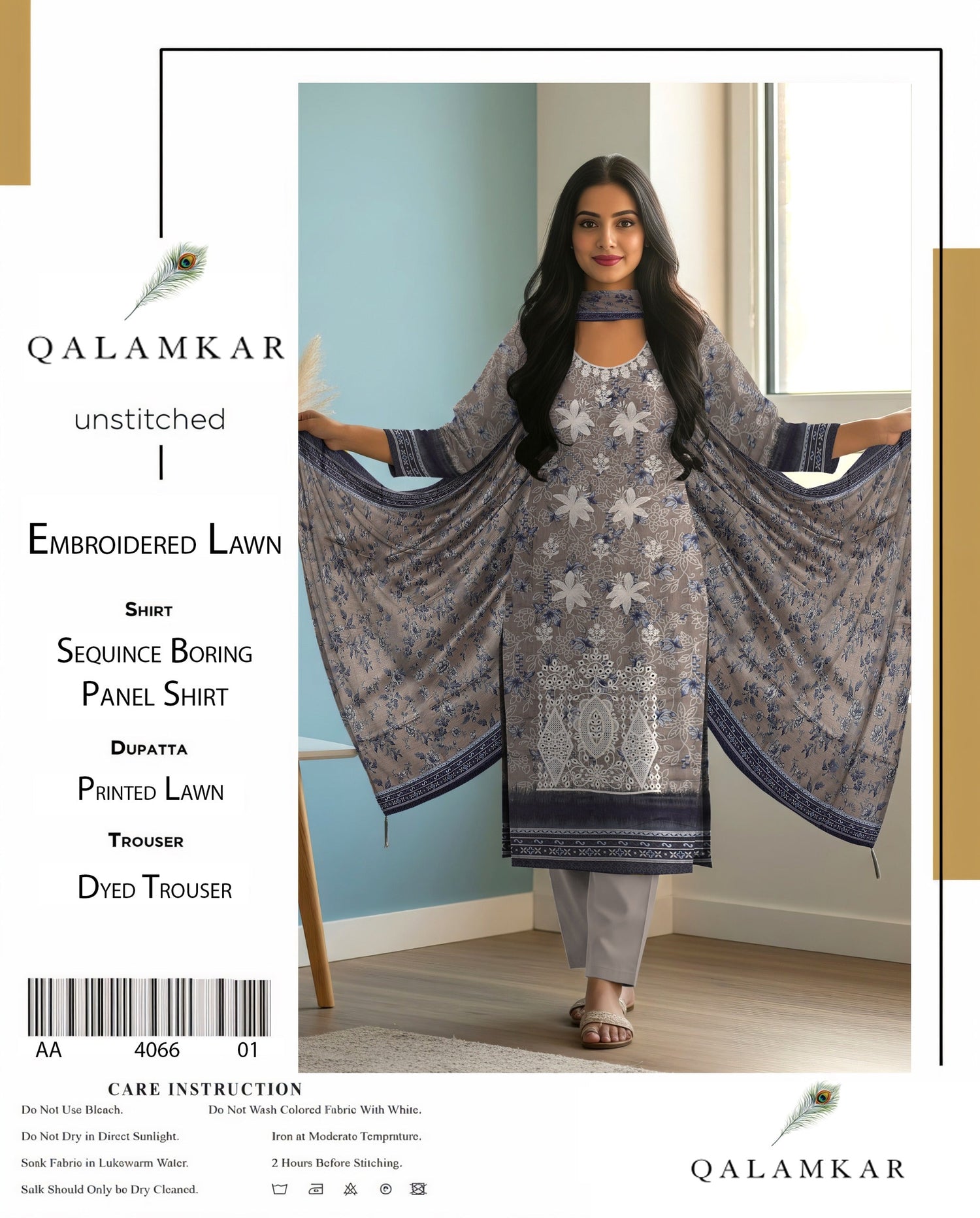 EMB 3 Piece Grey Suit | Lawn Stuff By QALAMKAR