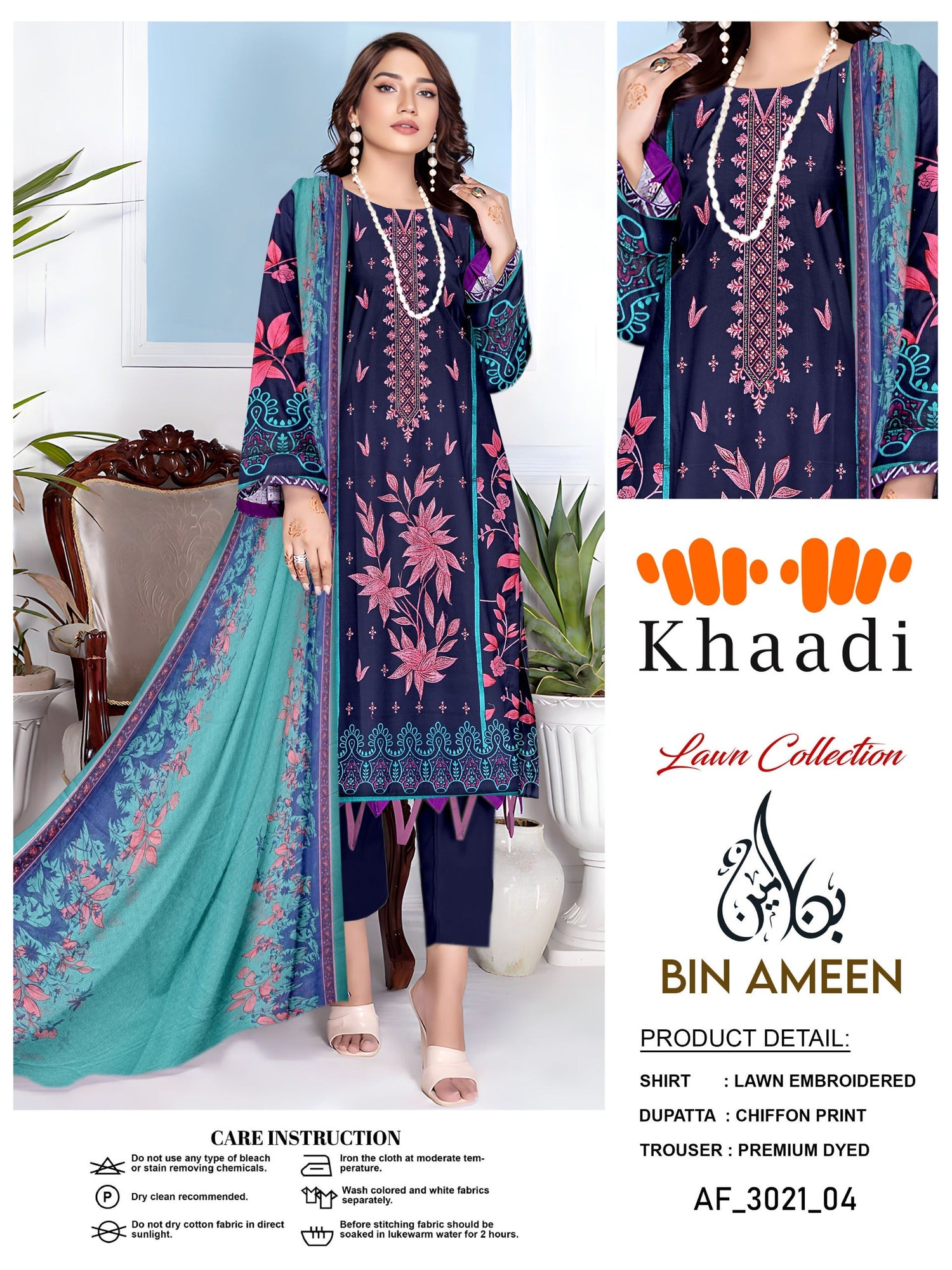 EMB 3 Piece Blue Suit | Lawn Stuff By KHAADI