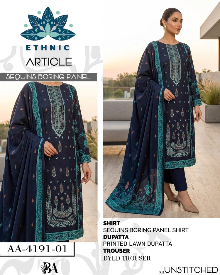 EMB 3 Piece Navy Blue Suit | Lawn Stuff By Ethnic
